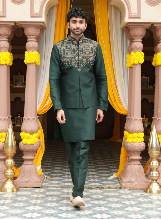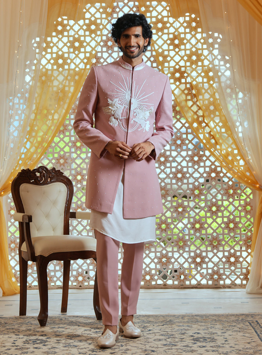 Our collections celebrate India’s vibrant cultural diversity—through rich colors, intricate patterns, and contemporary silhouettes. From regal sherwanis and bandhgalas to versatile kurtas and Indo-westerns, Devo dresses every generation in the spirit of celebration.